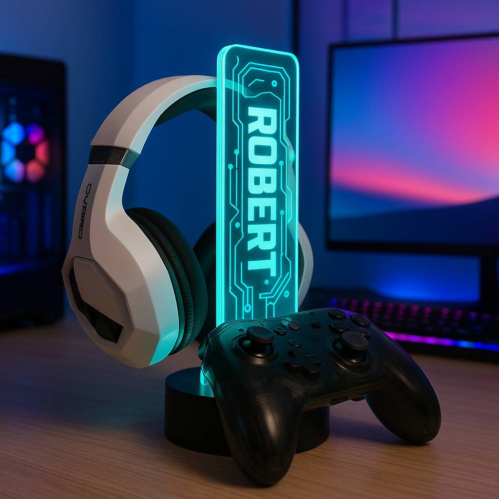 Personalized LED Acrylic Headphone and Controller Stand – Custom Gamer Tag Gift